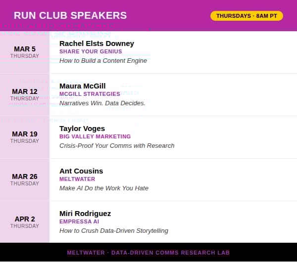 → Join us live — The DDC Run Club meets every Thursday. Free, virtual, interactive. 8am LA / 11am NYC / 4pm London. 250+ communicators registered, learning together every week. REGISTER FOR FREE