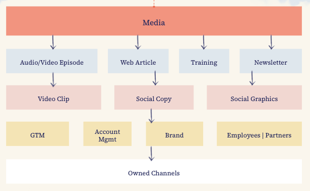 Media as a system. People at the center. The content isn't the goal — the outcome is. In this case: more pipeline, better win rates, a contribution she can actually point to.